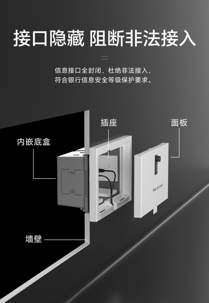 嵌入式防護罩是解決(公共場所自助設備及加鈔間)墻插的第五代專用行業(yè)定制產(chǎn)品,底盒嵌入式安裝,墻插內置其中,使得設備安裝后墻面整潔美觀;具有剛性防護、線路收納、防接入、防觸電等功能,并兼具設備維護便捷性的特點。